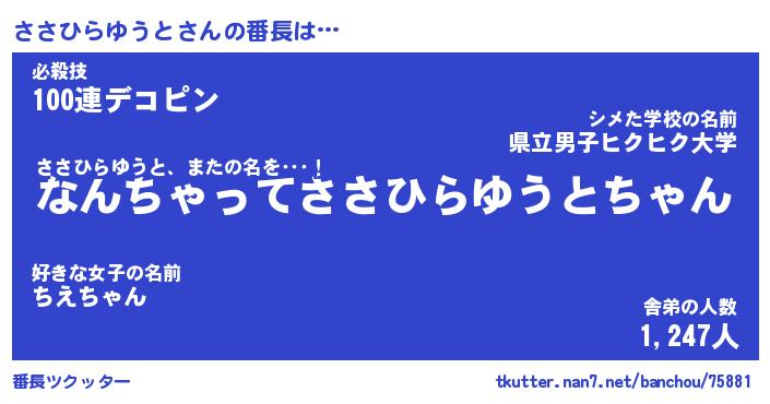 | 意味不明あだ名 | 『ペロリンささひらゆうと』 |