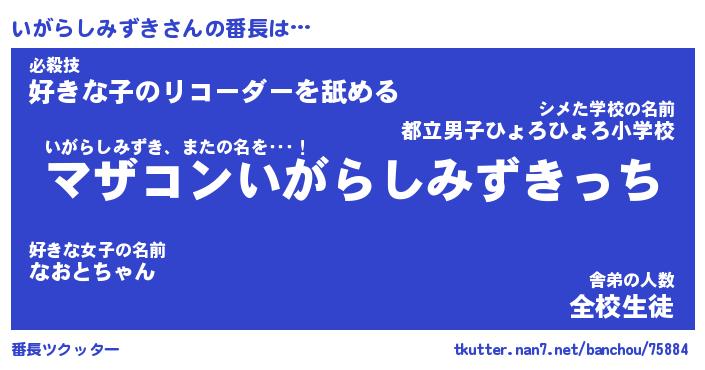| 男性向けラノベタイトル風あだ名 | 『イガラシミズキアートオンライン』 |
