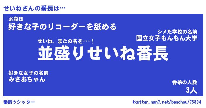 | ポケモン風あだ名 | 『セイチュウ』『セイネダネ』 |