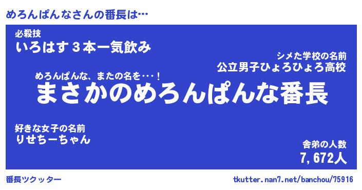 | ヒーロー風カッコイイあだ名 | 『スーパーメロンパンナ』『銀牙騎士メロ』 |