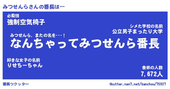 | 男性向けラノベタイトル風あだ名 | 『みつせんらの憂鬱』 |