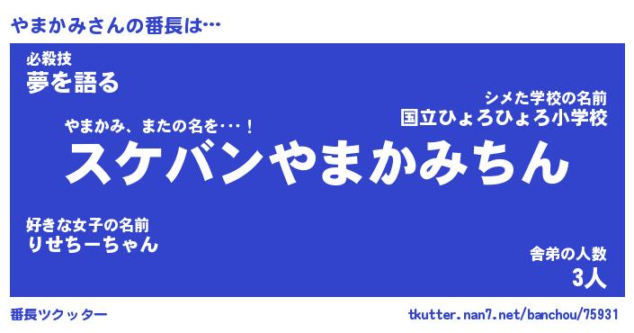 | 意味不明あだ名 | 『ペロリンやまかみ』『永久保存やまかみ』 |