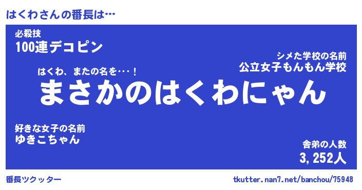 | 肩書あだ名 | 『はくわCEO』『はくわ総理大臣』 |