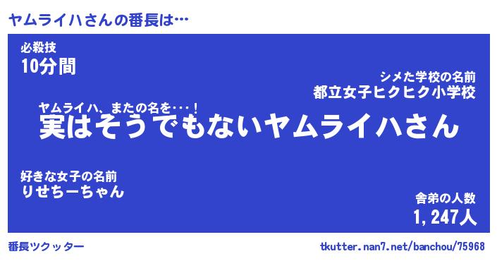 | ヒーロー風カッコイイあだ名 | 『スーパーヤムライハ』『暗黒騎士ヤム』 |