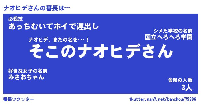 | ポケモン風あだ名 | 『ナオチュウ』『ナオヒダネ』 |