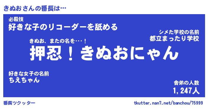 | 意味不明あだ名 | 『ペロリンきぬお』『きぬおフォーエバー』 |