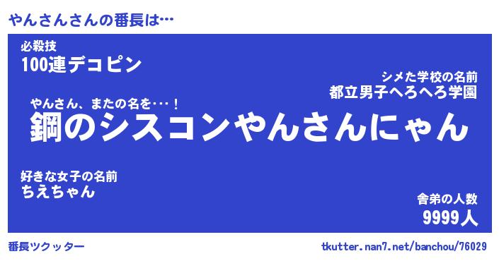 | 伝説のあだ名 | 『封印されしスナイパーやんさん』 |