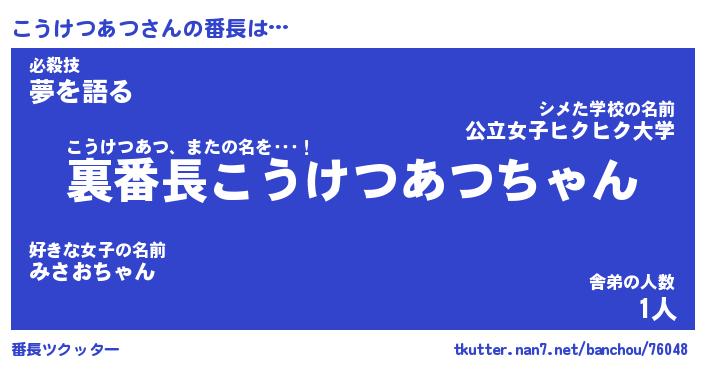 | 肩書あだ名 | 『こうけつあつ社長』『こうけつあつ校長』 |