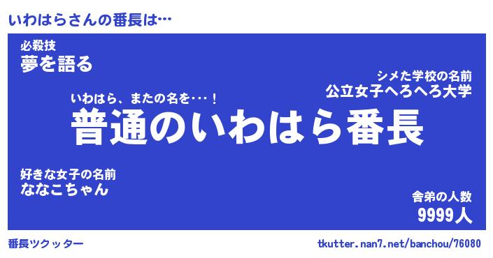 | 肩書あだ名 | 『いわはら社長令嬢』『いわはら大統領』 |
