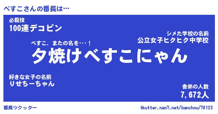 | 意味不明あだ名 | 『ペロリンべすこ』『べすこフォーエバー』 |