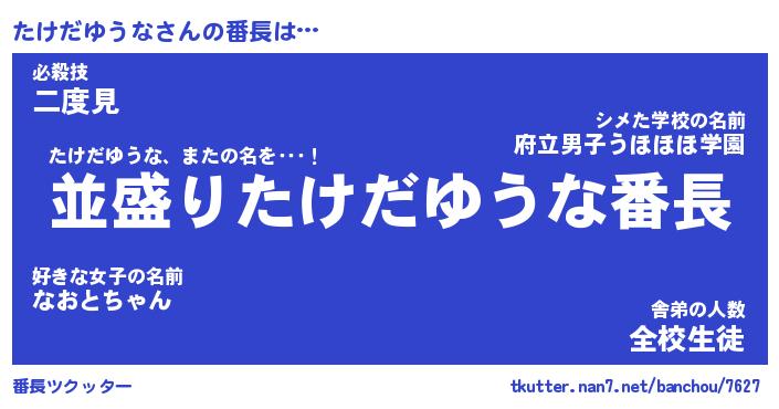 | ヒーロー風カッコイイあだ名 | 『スーパータケダユウナ』『炎刃騎士タケ』 |