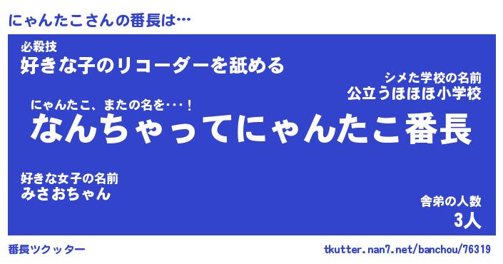 | ヒーロー風カッコイイあだ名 | 『スーパーニャンタコ』『魔戒騎士ニャ』 |