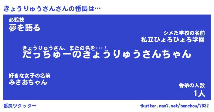 | ポケモン風あだ名 | 『キョチュウ』『キョウダネ』 |