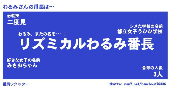 | 2回繰り返すあだ名 | 『わるわる』『わわるる』『ねちねち』 |