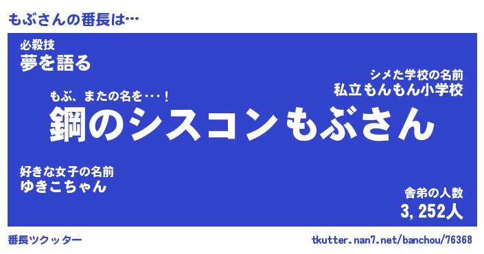 | 伝説のあだ名 | 『封印されしスナイパーもぶ』 |