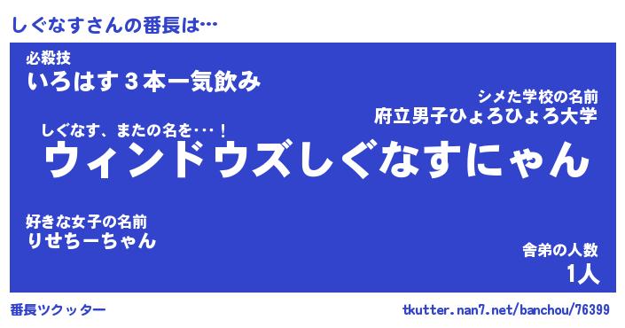| 意味不明あだ名 | 『ペロリンしぐなす』『永久保存しぐなす』 |