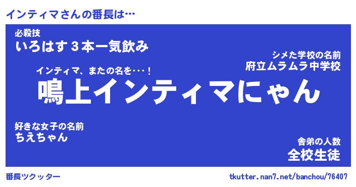 | 自動車の名前っぽいあだ名 | 『インティマ』『イスラー』『デミイ』 |