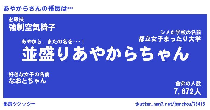 | ファンタジー風あだ名 | 『アヤフェル』『エターナルアヤカラー』 |