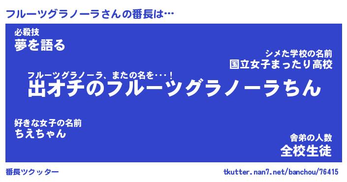 | 意味不明あだ名 | 『ペロリンフルーツグラノーラ』 |