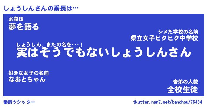 | 肩書あだ名 | 『しょうしん店長』『しょうしん国家主席』 |