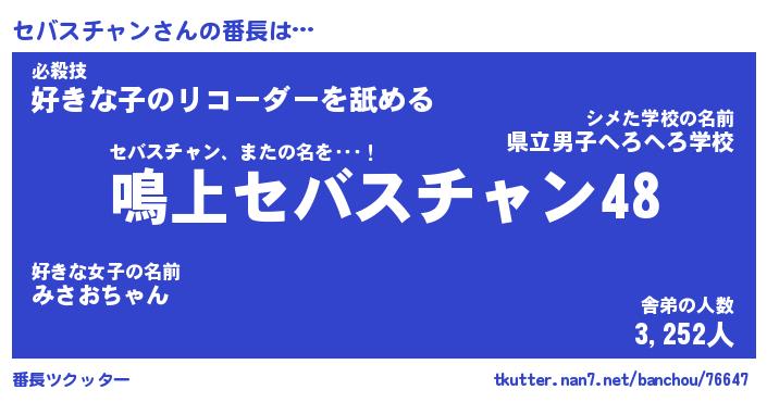 | 2回繰り返すあだ名 | 『セバセバ』『セセババ』『ぺたぺた』 |