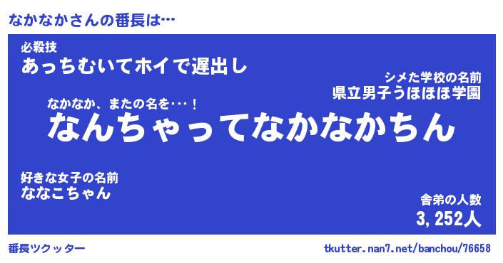 | 意味不明あだ名 | 『ペロリンなかなか』『永久保存なかなか』 |