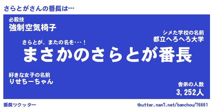 | 意味不明あだ名 | 『ペロリンさらとが』『永久保存さらとが』 |