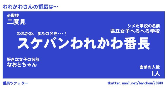 | 意味不明あだ名 | 『ペロリンわれかわ』『永久保存われかわ』 |