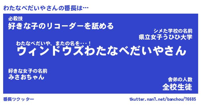 | 伝説のあだ名 | 『伝説のスナイパーわたなべだいや』 |