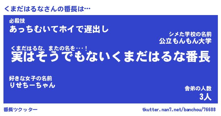 | 伝説のあだ名 | 『封印されしスナイパーくまだはるな』 |
