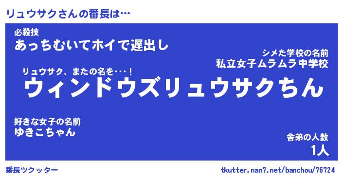 | ファンタジー風あだ名 | 『リュフェル』『エターナルリュウサクー』 |