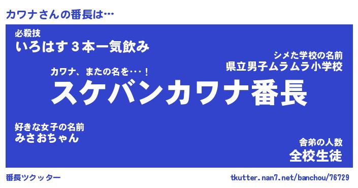| 肩書あだ名 | 『カワナ御曹司』『カワナ総理大臣』 |