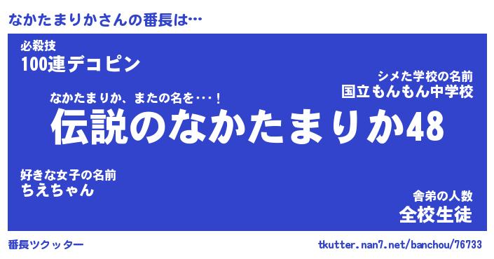 | ヒーロー風カッコイイあだ名 | 『スーパーナカタマリカ』『黄金騎士ナカ』 |