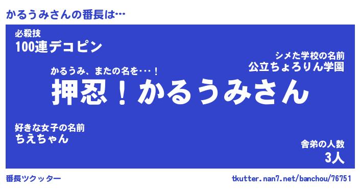 | 肩書あだ名 | 『かるうみ御曹司』『かるうみ大統領』 |