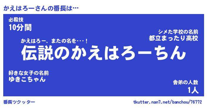 | 男性向けラノベタイトル風あだ名 | 『かえはろーの憂鬱』 |