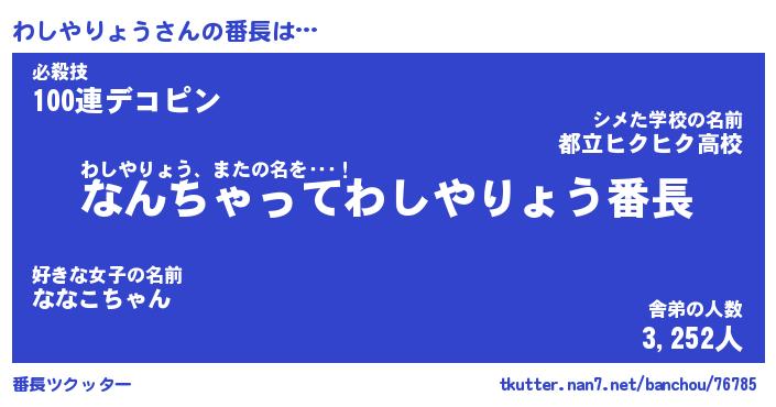 | 肩書あだ名 | 『わしやりょう御曹司』 |
