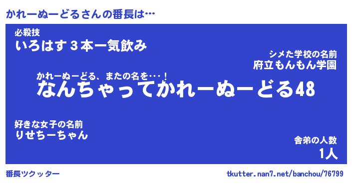 | 伝説のあだ名 | 『伝説のスナイパーかれーぬーどる』 |
