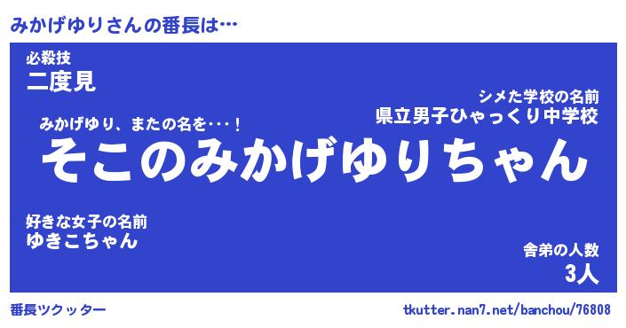 | ピコ太郎風あだ名 | 『ミコ史郎』『ピミ三郎』『ミカ一郎』 |