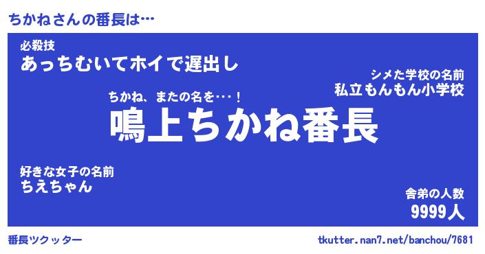 | ヒーロー風カッコイイあだ名 | 『スーパーチカネ』『ウルトラちかねマン』 |