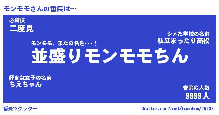| 意味不明あだ名 | 『ペロリンモンモモ』『永久保存モンモモ』 |