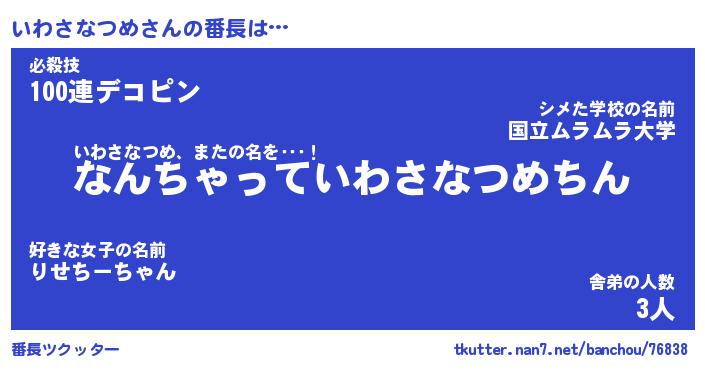 | 伝説のあだ名 | 『伝説のスナイパーいわさなつめ』 |