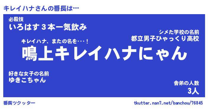 | ヒーロー風カッコイイあだ名 | 『スーパーキレイハナ』『幻影騎士キレ』 |