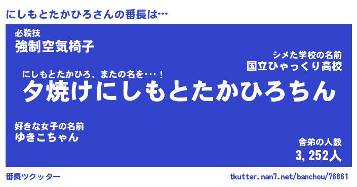 | 肩書あだ名 | 『にしもとたかひろ御曹司』 |