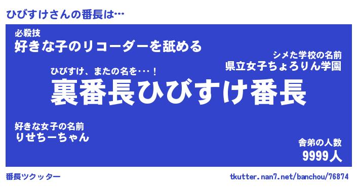 | 自動車の名前っぽいあだ名 | 『ヒビティマ』『ヒスラー』『ヒント』 |