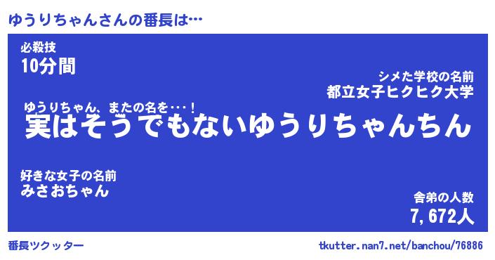 | ヒーロー風カッコイイあだ名 | 『スーパーユウリチャン』『銀牙騎士ユウ』 |