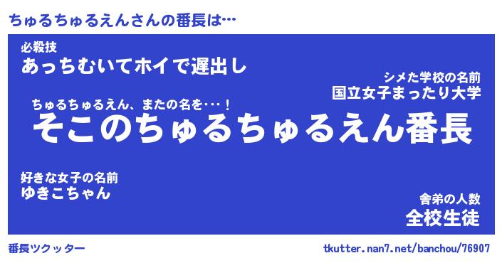 | 2回繰り返すあだ名 | 『ちゅちゅ』『ちちゅゅ』『うるうる』 |