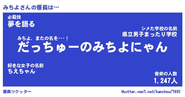 | ヒーロー風カッコイイあだ名 | 『スーパーミチヨ』『ウルトラみちよマン』 |