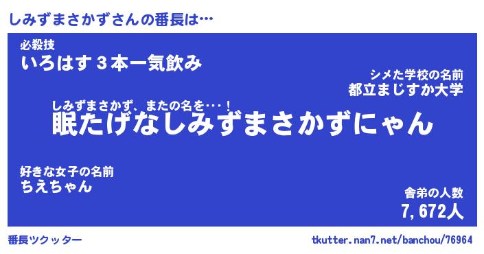 | 伝説のあだ名 | 『封印されしスナイパーしみずまさかず』 |