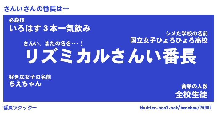 | 意味不明あだ名 | 『ペロリンさんい』『さんいフォーエバー』 |