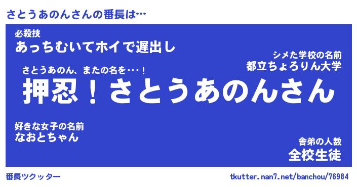 | ヘコむあだ名 | 『さとにー』『なまこ酢』『さとを』 |